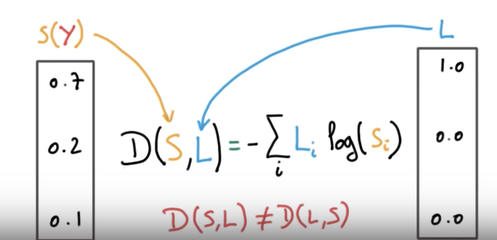 (분류 모델에서 데이터의 라벨은 one-hot encoding을 통해 표현된다. 즉 실제 확률 분포는 원 핫 인코딩으로 표현되는 것이다. 원핫코딩은 클래스의 종류가 N가지이고, 특정 데이터가 n번째 클래스에 속할 때 n번째 원소만 1이고 나머지는 0으로 채운 N차원 벡터로 바꿔주는 것이다. )